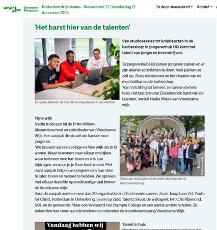 Lees het hele artikel in het Wijknieuws van de Gemeente Rotterdam of kijk op de website van Stichting Jeugd Aan Zet